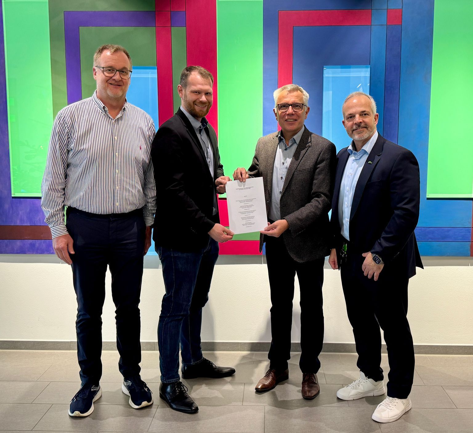 Georg Eicker, Geschäftsführer AVR UmweltService GmbH, Thorsten Sienholz, Verbandsvorsitzender AZV Elz-Neckar, Stefan Dallinger, Landrat Rhein-Neckar-Kreis, Thomas Brümmer, Geschäftsführer AVR UmweltService Verwaltungs GmbH